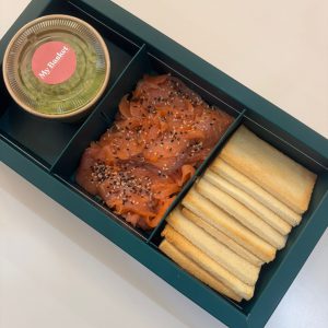 Cajita de tostas de salmón con guacamole (10 unidades) cantidad