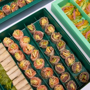 Cajita XL tostas salmón/aguacate y jamón ibérico/tomate (18 unidades) cantidad